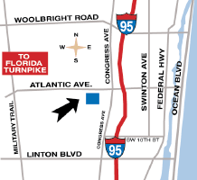 Take I-95 to Atlantic Avenue in Delray Beach. Head West on Atlantic Avenue to Congress Avenue, approximately one-quarter of a mile from the Atlantic Avenue exit.